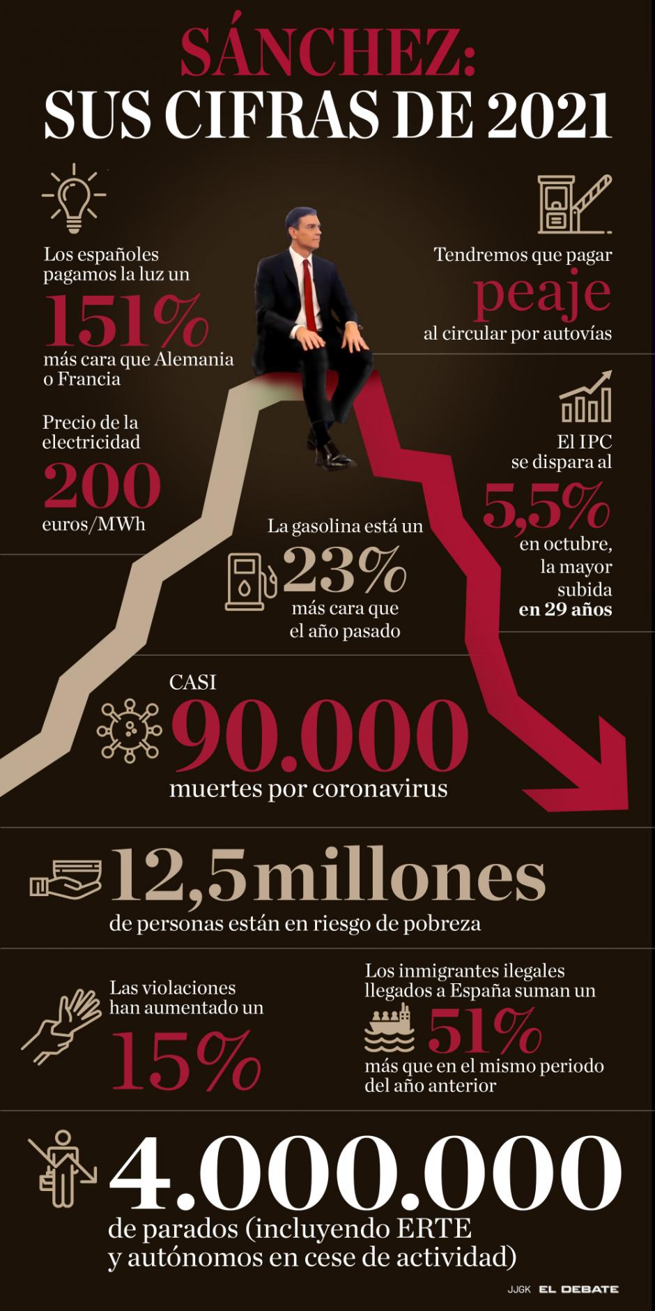 Electricidad, IPC, cifra de parados, carburantes, peajes, inmigración ilegal, aumento de las violaciones y casi 90.000 muertos por Covid