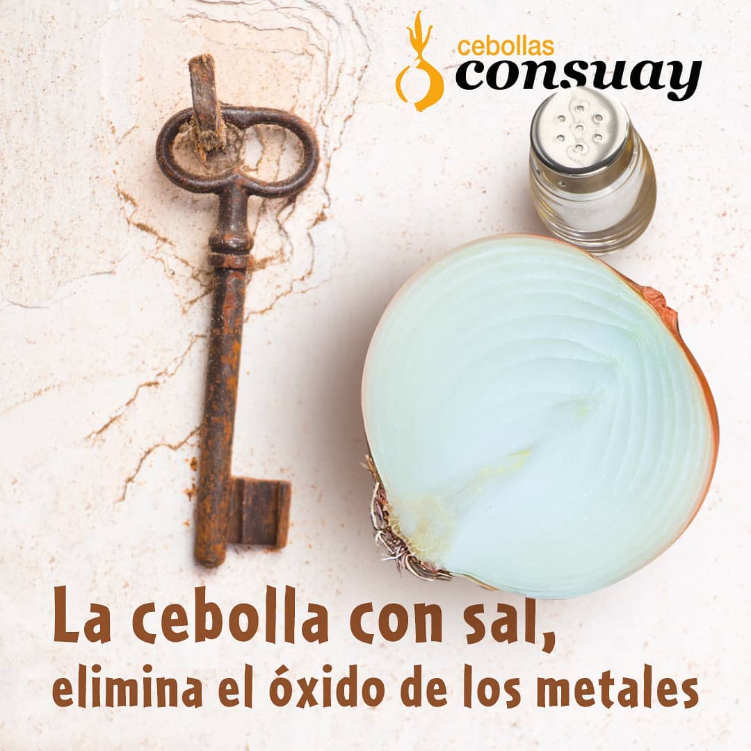 La cebolla elimina el óxido de los metales de una manera rápida y sencilla. Solo tienes que partir una cebolla y poner abundante sal 🧂 sobre una de las caras. Después frotad con energía 💪 sobre la zona oxidada, dejar actuar un cuarto ⏳ de hora y finalmente limpiar con un paño limpio.Quitamanchas